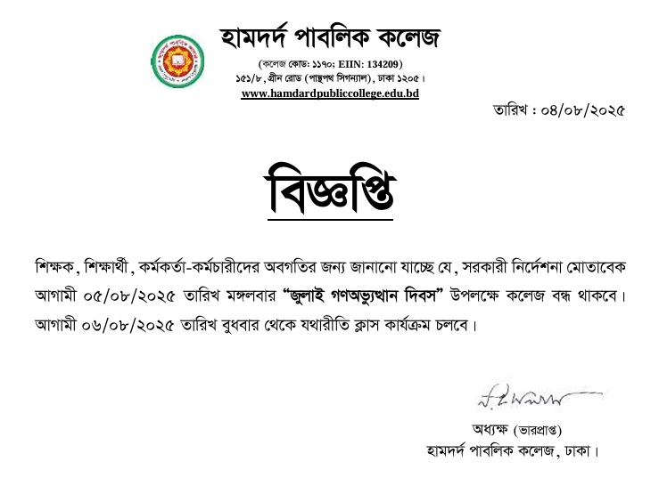 বিজ্ঞপ্তি (০৪/০৮/২০২৫)