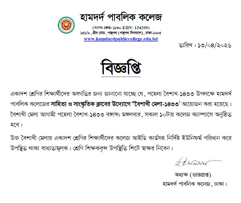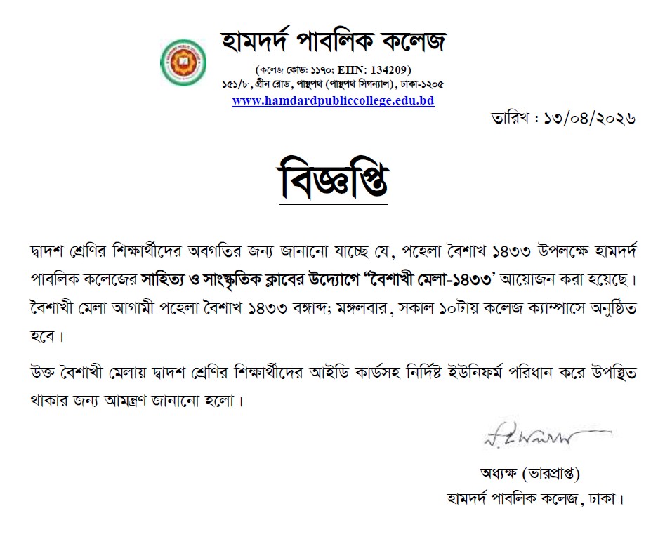 বিজ্ঞপ্তি-১৩/০৪/২০২৬