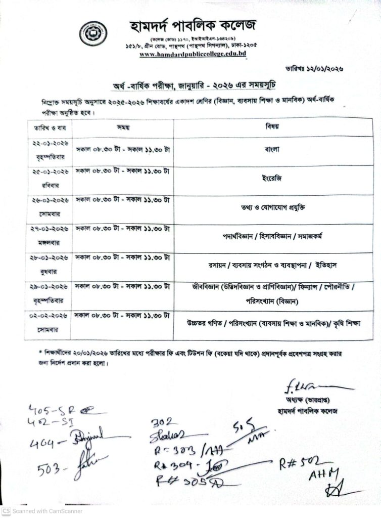 1st Year Half yearly Exam Routine, jan-2026